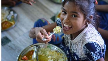 Each day, children are served meals that include fruits, channa (chickpeas), paneer, or meat, offering a variety of nutrients that contribute to their physical and cognitive development. The program is designed to combat malnutrition and improve energy levels, helping students stay focused in class and actively participate in their studies.